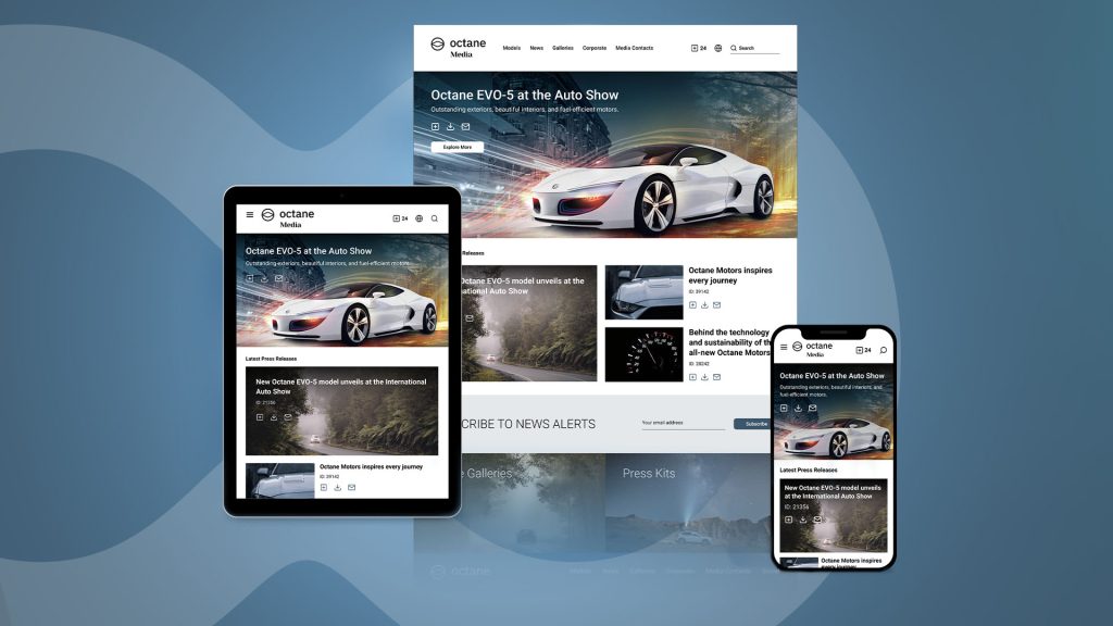 The platform’s intuitive content management system lets your team effortlessly organize and share diverse multimedia, including images, videos, press kits, and more. This streamlined process ensures agility and precision in content management, making it simple to build a dynamic and responsive online presence to optimize engagement with automotive media.